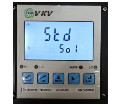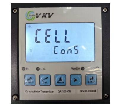 3. 通過(guò)▲ 或 ? 鍵來(lái)選擇模式,CELL 為電極系數(shù)設(shè)定模式,Std 為標(biāo)準(zhǔn)液校正模式。選擇 CELL 模式,按 Enter 鍵確認(rèn)進(jìn)入