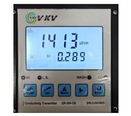 5.將電極放入 1413us/cm 標(biāo)液中,點(diǎn)擊Enter 鍵,開(kāi)始校正。